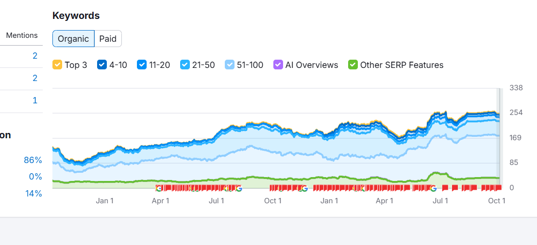 - Organic Keywords : Increased from 1.1K to 1.6K with the 45% Growth